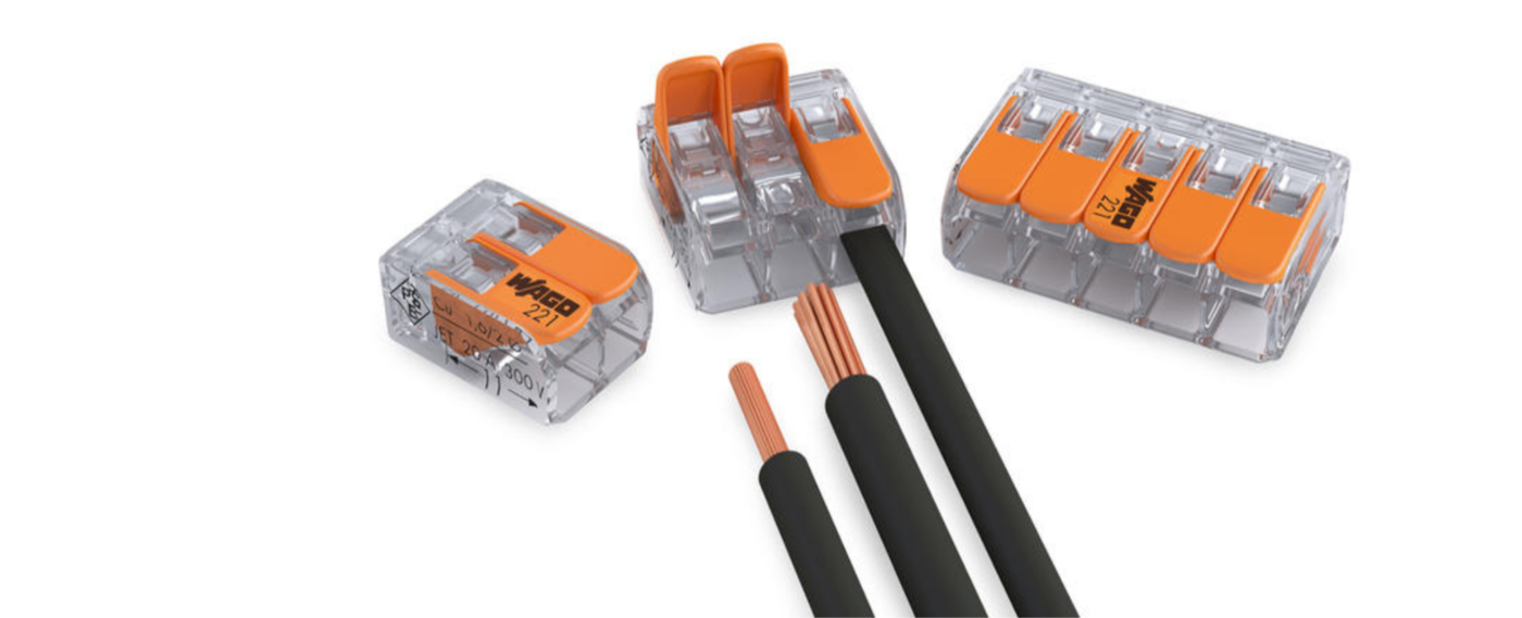 Pull the lever up, insert a conductor and push the lever back down – done! As tool-free, lever-actuated connectors, WAGO's 221 Series Splicing Connectors easily, quickly and safely connect solid, stranded and fine-stranded conductors ranging from 24–10 AWG.
