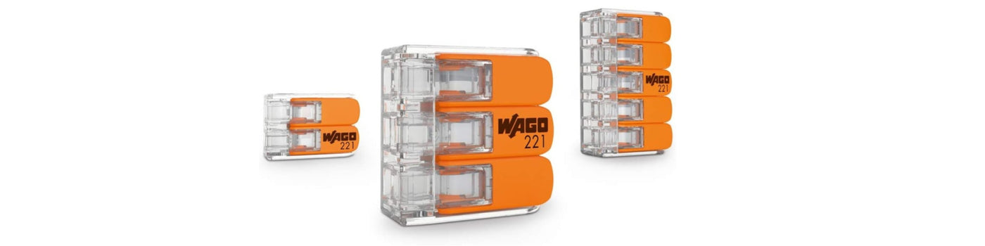 Pull the lever up, insert a conductor and push the lever back down – done! As tool-free, lever-actuated connectors, WAGO's 221 Series Splicing Connectors easily, quickly and safely connect solid, stranded and fine-stranded conductors ranging from 24–10 AWG.