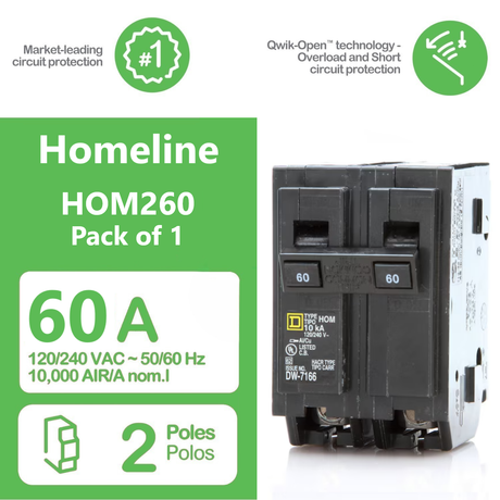 Square D Homeline 60 Amp Circuit Breaker - 2-Pole (HOM260)