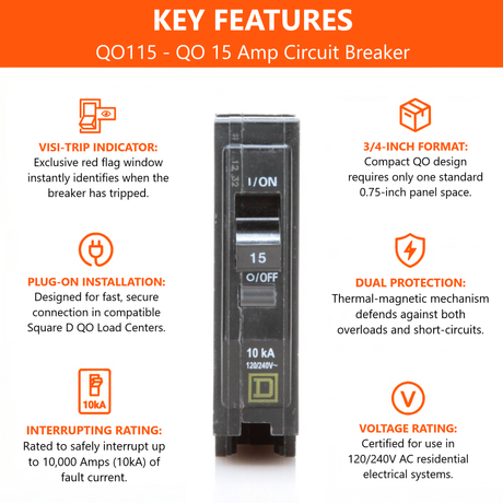 Square D QO 15 Amp Circuit Breaker - 1-Pole (QO115)