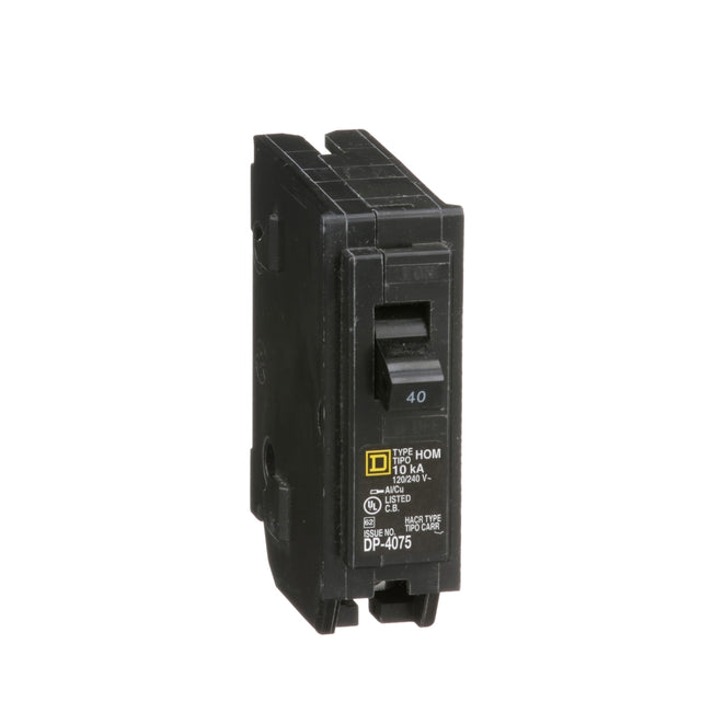 The Square D Homeline 40 Amp Single Pole Circuit Breaker by Schneider Electric is used for overload and short-circuit protection of your electrical system. This breaker is compatible with Homeline load centers and CSED devices. The ANSI-certified and UL-listed unit is rated for 120 and 10,000 AIR. Homeline circuit breakers are built with the same Square D brand quality you have come to expect at a price that makes them the best value in their class. Homeline circuit breakers are the best in class. Designed exclusively for the residential market, Homeline products offer everything you need to distribute electricity throughout your home.